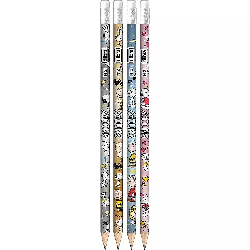 O Lápis Preto Redondo Metalizado Snoopy Tilibra traz um visual encantador com várias estampa do personagem mais amado da nossa infância e corpo redondo confortável de segurar. Sua mina nº2 de 2 mm garante escrita suave e precisa, perfeita para anotações, desenhos ou trabalhos escolares.